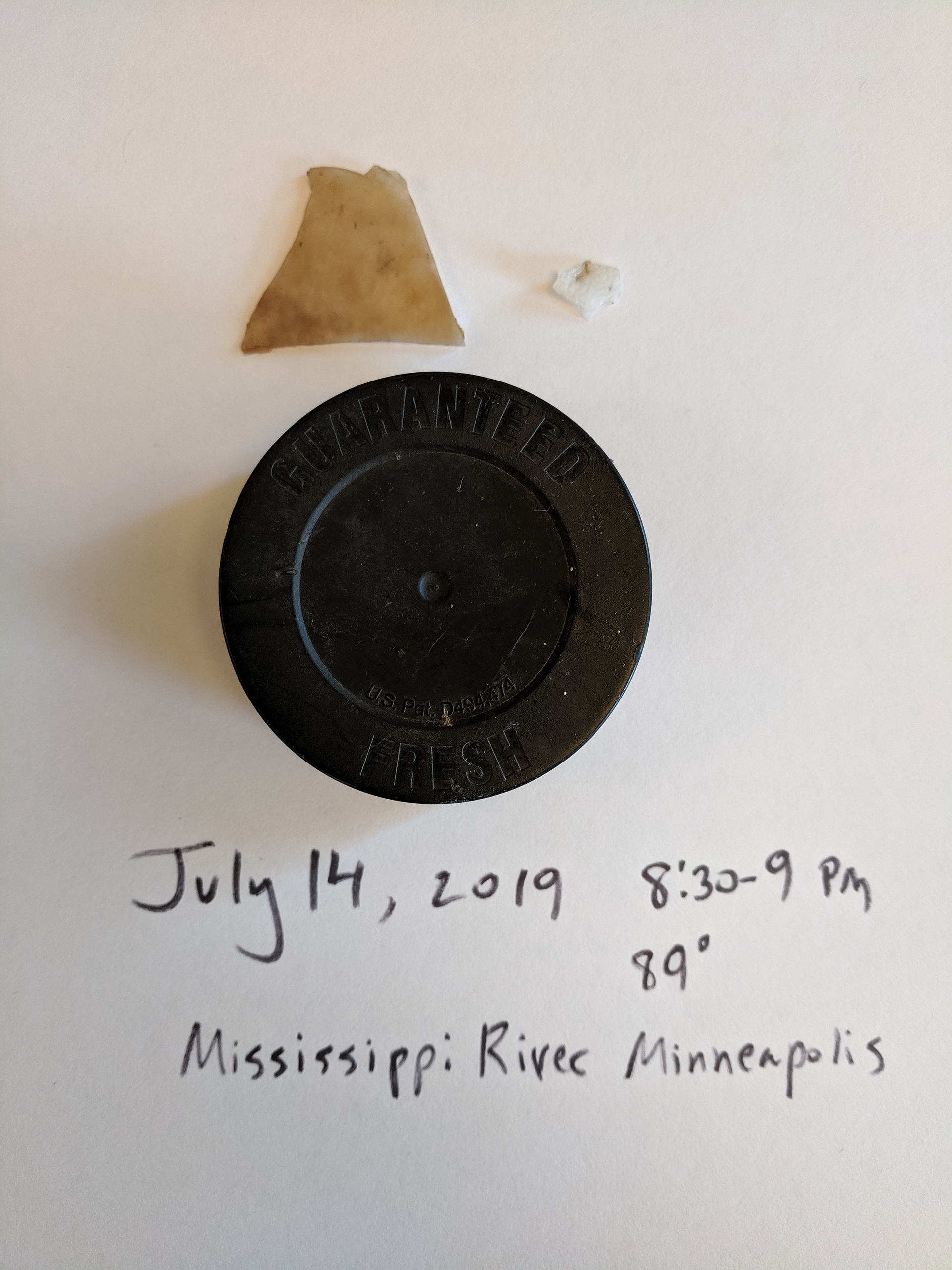 I sit on a floating dock in the Mississippi River and grab all the plastic within arms reach for 30 minutes.